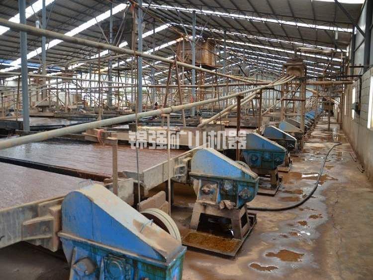 云錫式搖床設(shè)備是我國(guó)云南錫業(yè)機(jī)械制造有限公司對(duì)原蘇式CC-2型搖床進(jìn)行改進(jìn)而成,故也稱云錫選礦搖床。云錫式搖床床頭采用凸輪杠桿式,另一些則采用凸輪搖臂搖臂式簡(jiǎn)化床頭。云錫選礦搖床設(shè)備床架較簡(jiǎn)單,床面采用滑動(dòng)支承方式。云錫式搖床床面與6S搖床面基本相同,不同于6S搖床在縱向上有若干個(gè)斜坡。磨床采用生漆、生漆(生漆與鍛石膏混合物)、玻璃鋼或聚氨酯作耐磨層,有粗砂床、細(xì)砂床、礦泥床3種。一般粗砂床上鋪梯形來(lái)復(fù)條,細(xì)砂床上鋪有鋸齒形復(fù)條,礦泥床面為三角形溝槽。