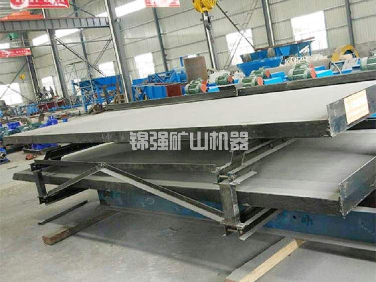 二、產(chǎn)品構(gòu)造及材料:6S雙層選礦搖床選用與6-S大糟鋼支撐架搖床同樣方式基座,兩基腳置放于大糟鋼基座上,大糟鋼厚鋼板上上升電焊焊接糟鋼支撐架用以置放搖臥室床,搖床面選用在6-S單面搖床床表面提升上一塊規(guī)格與原來床體同樣的床體,左右雙層用厚鋼板聯(lián)接支撐點(diǎn),他們的間隔400mm,自由空間約300mm。臥室床仍選用雙曲柄搖桿組織,彈黃盒在搖晃箱上,發(fā)動(dòng)機(jī)曲軸、支撐桿、彈黃、遙桿等構(gòu)件都相對應(yīng)增加了規(guī)格,材料更為標(biāo)準(zhǔn)。床體為玻璃鋼防腐床體,6S雙層搖床上下一層規(guī)格均為1823*1558*4520mm。上下一層床體同用下一層床體的一套調(diào)坡設(shè)備,選用搖晃肘板支撐。其調(diào)節(jié)座板和底座的轉(zhuǎn)動(dòng)斜線半經(jīng)擴(kuò)大至545mm,以融入弧形支撐點(diǎn)旋轉(zhuǎn)圓心點(diǎn)與牽引帶螺釘管理中心在同一平行線上。
